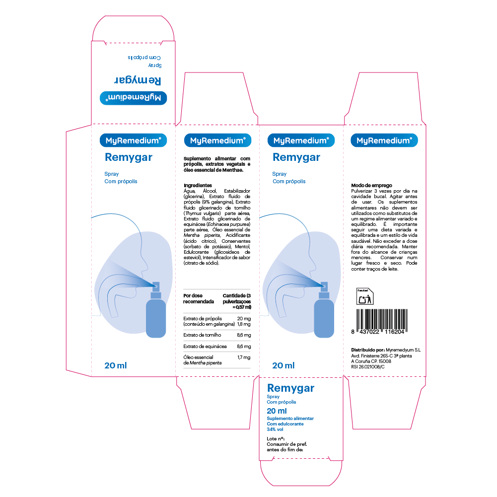 Remygar Spray es un complemento en formato spray indicado para aliviar el dolor e irritación de garganta. Combina ingredientes naturales como propóleo, tomillo, equinácea y menta que tienen propiedades antiinflamatorias, antimicrobianas y calmantes. Ideal para usar varias veces al día para reducir molestias y mejorar la sensación de bienestar.